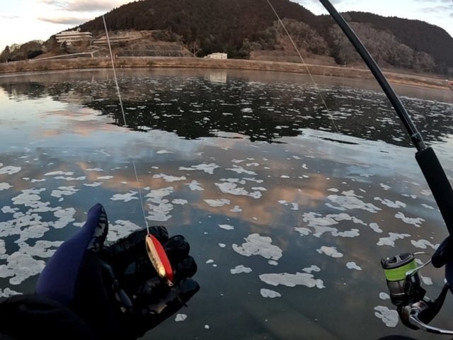 その後は、リリース池でドクターミノーなど用いて5匹ほど釣り、日が落ち始めた16時頃から一段と寒くなったので終了しました。