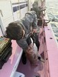 今回、初めてシロギスを釣るスタッフもいることから、朝一、港の船上にてその若船長の丁寧なシロギス釣りのレクチャーがありました。およそ、15分くらい、夏の釣り、冬の釣り、天秤の釣り、胴突き釣りなど深い知識をわかりやすく解説してくれました。このレクチャーがあったからこそ、シロギスの知識が薄いスタッフもスムースに釣りが出来て釣果アップに繋がりました。ありがとうございました。
