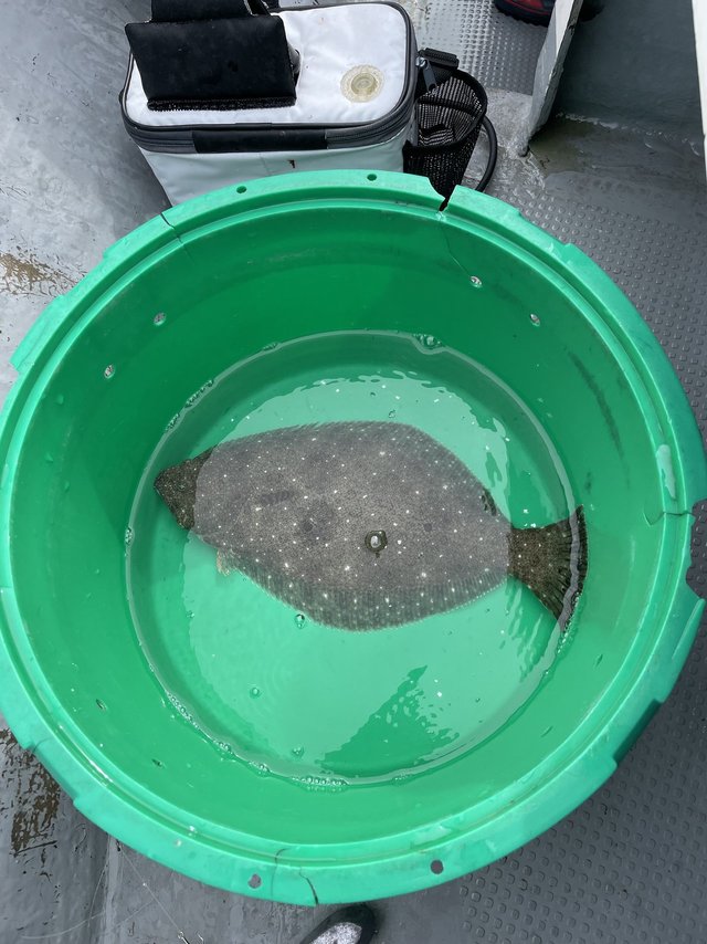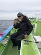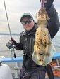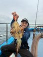 やっと1枚釣れたのは開始2時間以上経過してから。たしかにサイズは大きくて肝も入っていい感じの魚です。すると今度は左舷でポロポロ釣れ始めますが単発が多い。