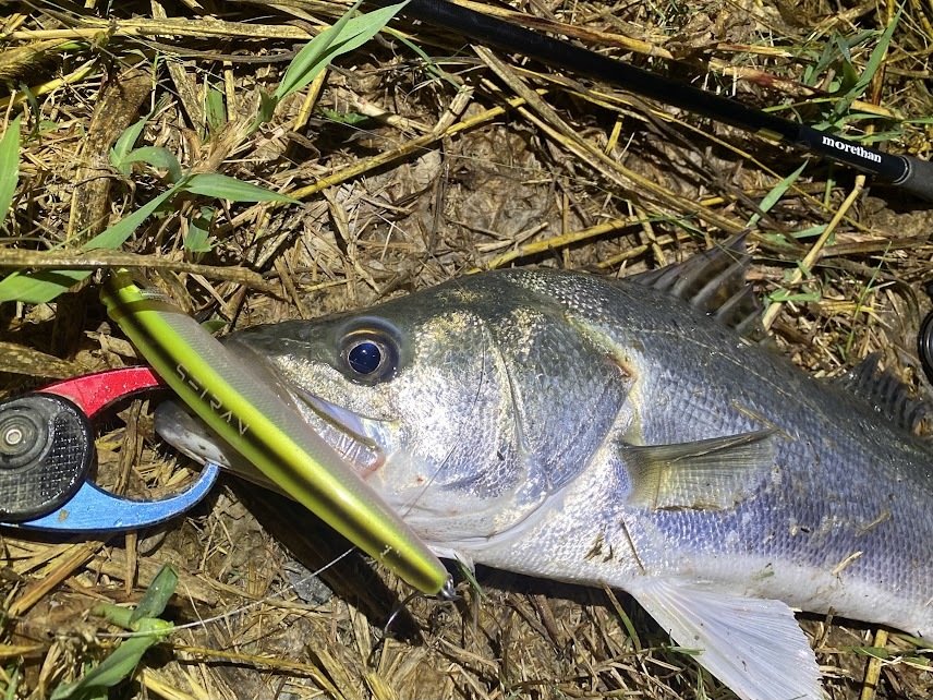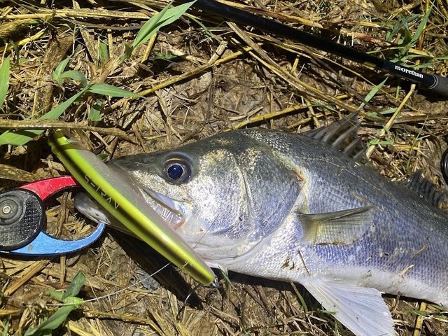 夏シーバスを思わせる強い引きのレギュラーサイズをキャッチできました!