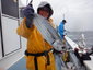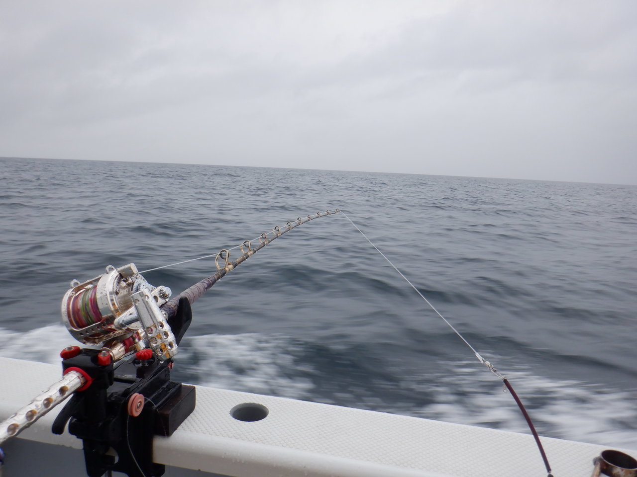 また、同時にチャレンジした餌サワラ釣りでは、天秤にオモリ80号、ワイヤー仕掛けを使用し、エサはマイワシ一匹掛け。