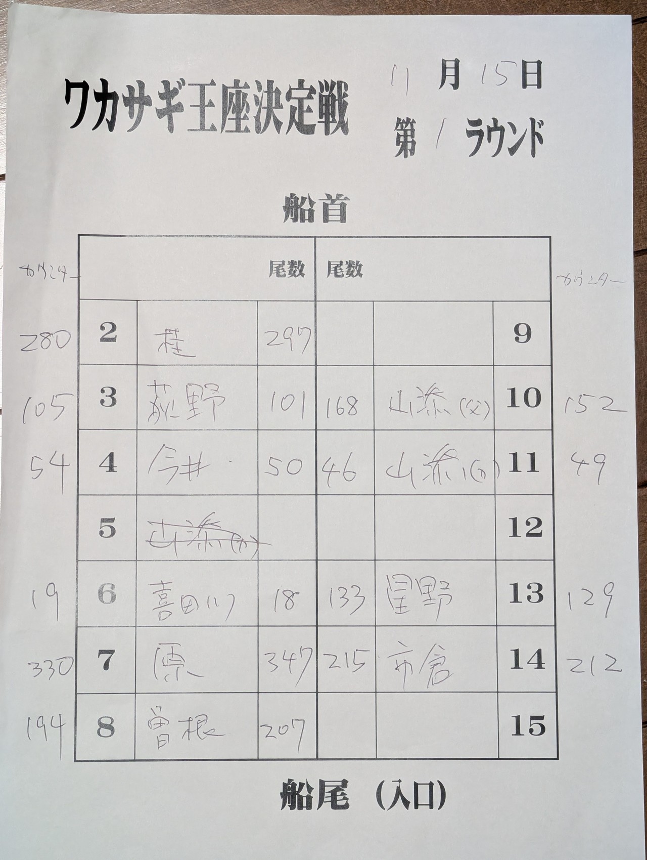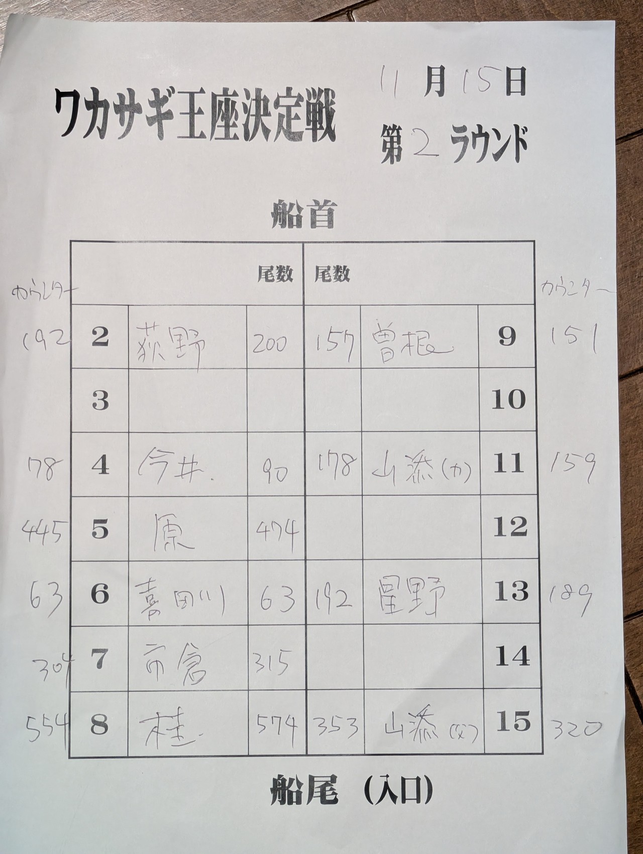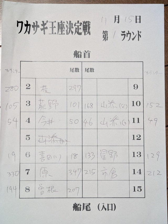 2位原さん821匹(この二人が決定戦進出決定です)