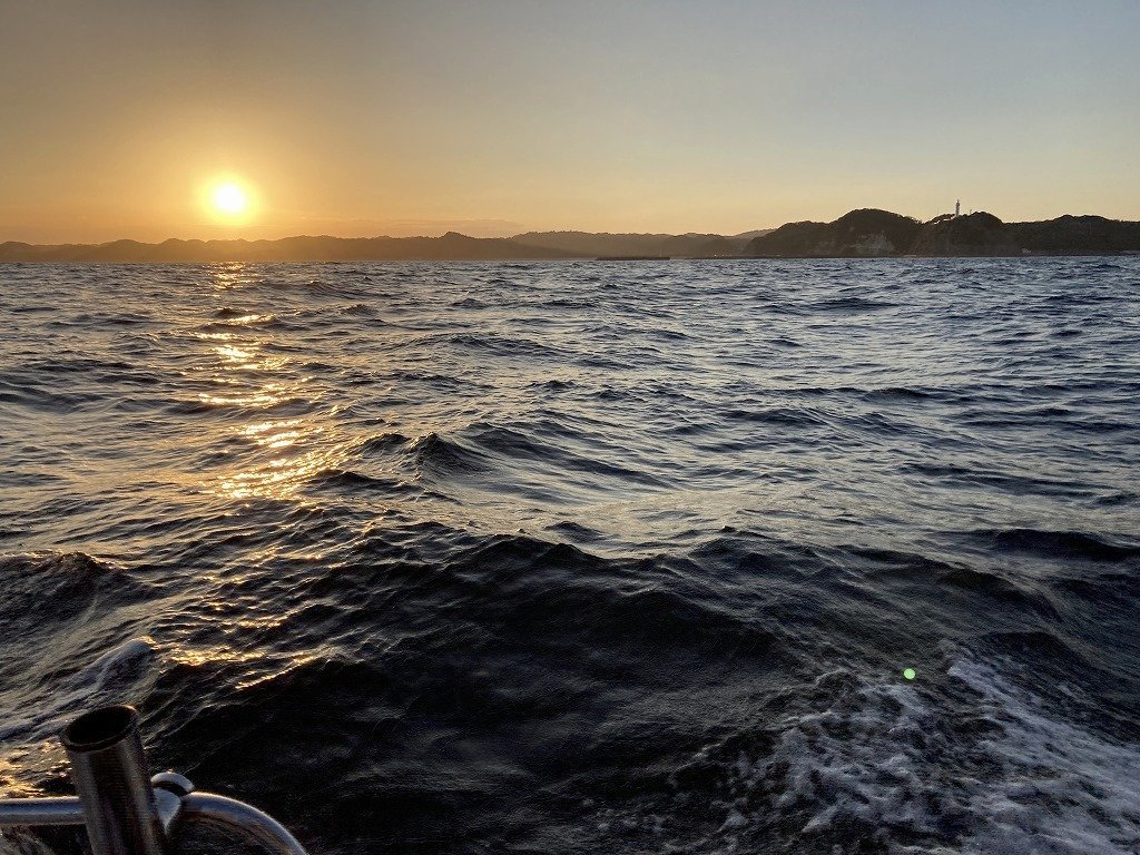 エサ釣り続行。竿が固いのかなかなかキャッチ出来ず。そうこうしている間に夕暮れに。