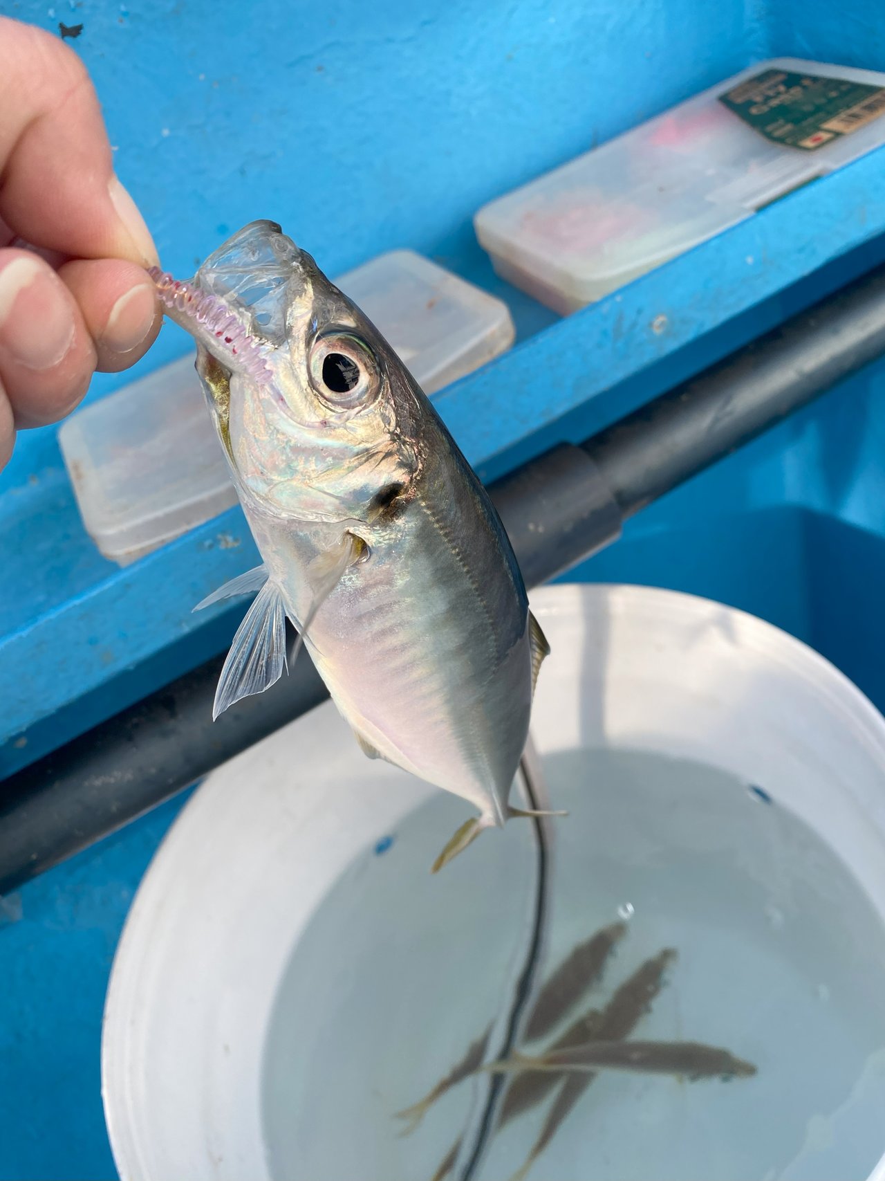 開始直後エサも釣れましたが横の方はバチコンでガンガン釣っていて悩みましたがとりあえず