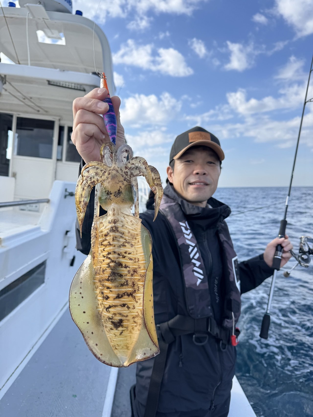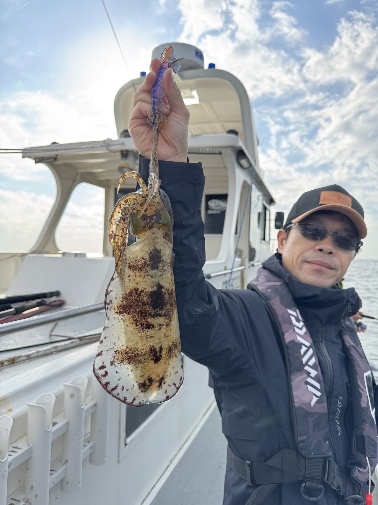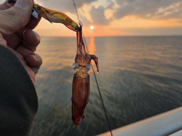 館山洲崎にあります赤沼丸さんより午後船のティップランエギングに行ってきました。最近の2日間はトップで二桁と絶好調!久しぶりに今日は期待できると思いながらの釣行。港からわずか5分ほどでポイント到着、水深は20mほど。潮は流れていないようで30gでスタート。一投目まっすぐに落ちていくので厳しいな、と思いながら着底後、シャクリ上げてからのステイ…乗ってくれました。隣の方とダブルヒットでまず1杯目。2投目、隣の方とまたまだダブルヒットで2杯目。3投目、今後は私だけ乗ってくれて3杯目…好調過ぎます。今日は2桁いっちゃうかな~と思いましたがその後は苦戦で忍耐の時間が多く、沖上がりの17時半まででアオリ2杯、モンゴウ1杯追加で終了。後半は苦戦でしたが、本命5杯の大満足釣行でした。ちなみに私、隣の方ともケイムラベースでした。