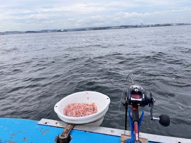 釣り場は港から出てすぐのところで八景島シーパラダイスが目の前のため出船してすぐに釣り開始です。しか〜しフグの猛攻であっという間にエサがとられたり、ハリがなかったりと即移動です。今度は富岡沖をしばらく流しますが、フグはいないもののマダイもエサとりもなくつけエサが残ってきます。移動を繰り返す中、時折船長が右舷側でタモ入れする姿を見たのでもしかするとマダイが釣れているのかもしれません。