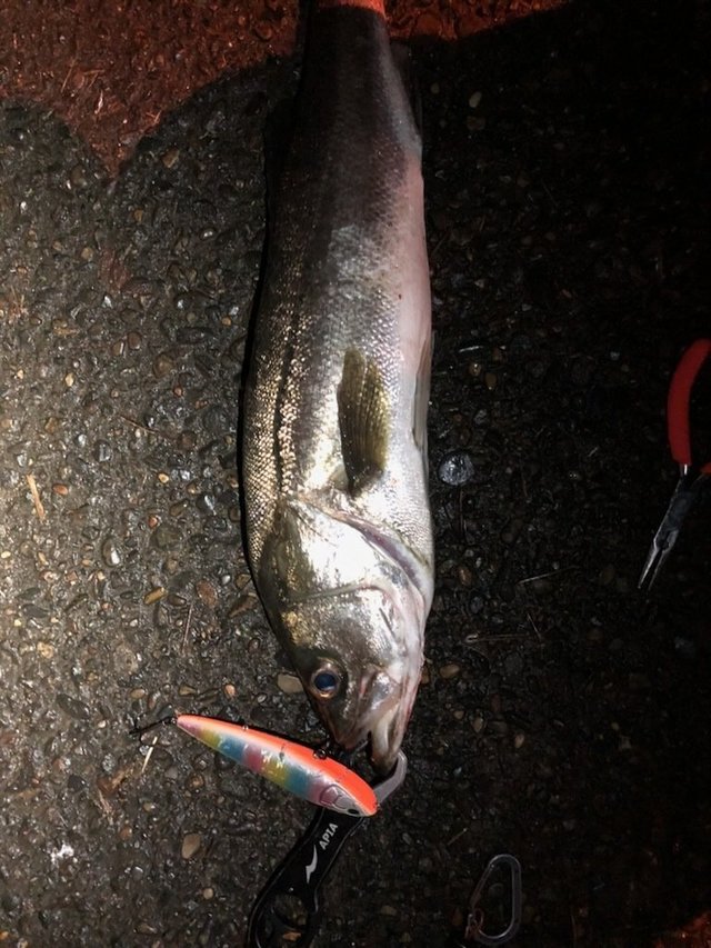 先日のビックサイズ2バラシのリベンジで一昨日はオフショアジギングの前に釣行し、また良型をヒットさせるもランディング寸前でフックが伸び痛恨すぎるバラシ。悔しすぎて眠れないので、仕事終わり23時半に有明方面に出発。満潮前後を狙いましたが、潮が悪く流れが緩すぎるのと狙いのブレイクまで水位が無い状況。想定した流れが出ないまま反応はワンバイトのみ。2時半頃に諦めて帰ろうしたところで突然ヒット!しかしレギュラーサイズ。ランカーリベンジにはなりませんでしたが渋い中嬉しい1本。ちょうど流れ出しのタイミングでした。やっとの流れなので30分延長。しかし後が続かず3時。朝から出勤なので撤収。リベンジ燃えて不思議と眠たくないです(笑)
