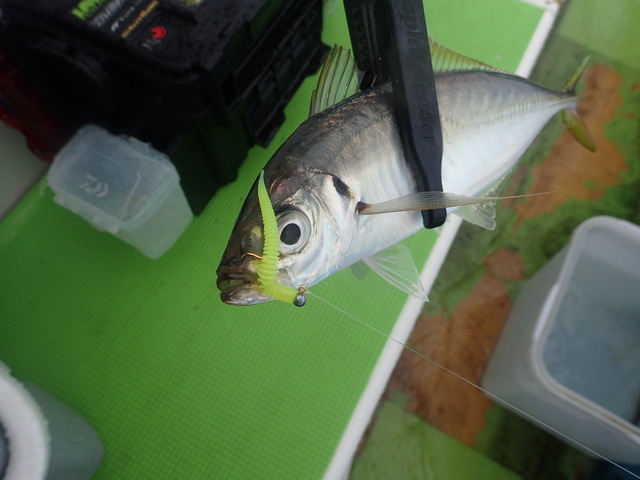 いっときアタリが連発した時があり、中〜大アジのお土産確保がなんとかでき、大アジのアタリと引きは、一瞬マダイかと思わせるようでドキドキ感満載です。