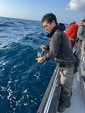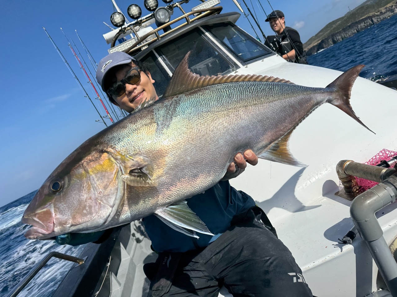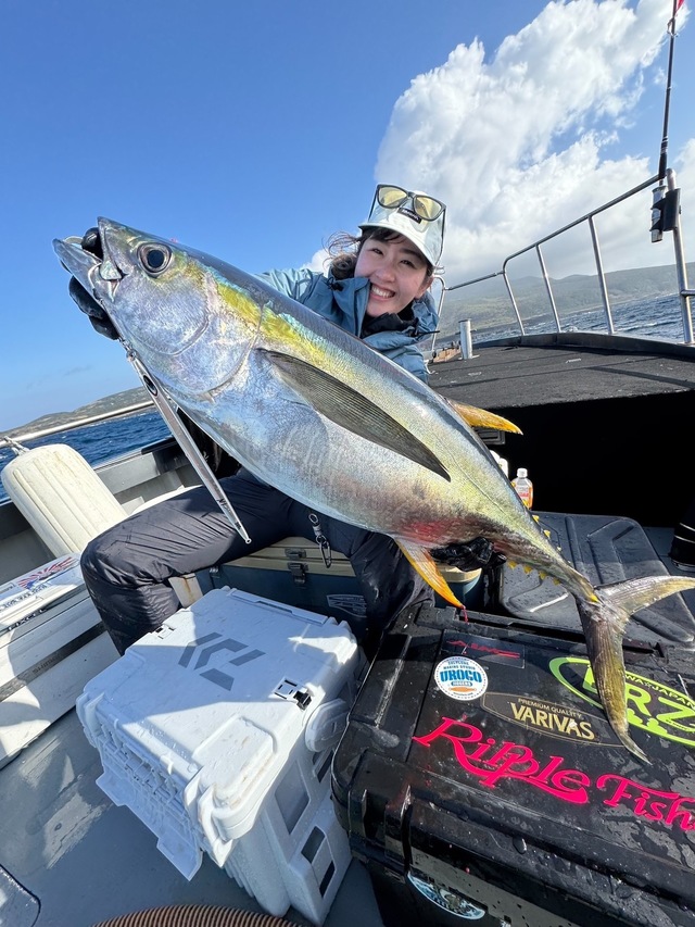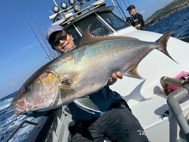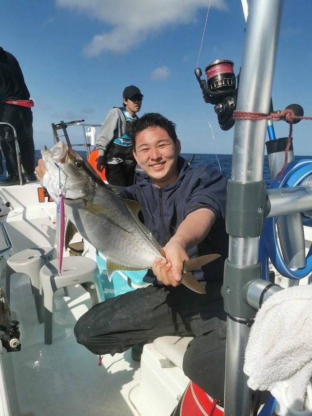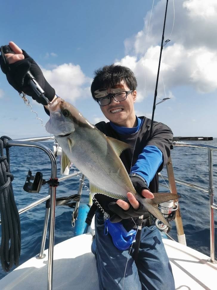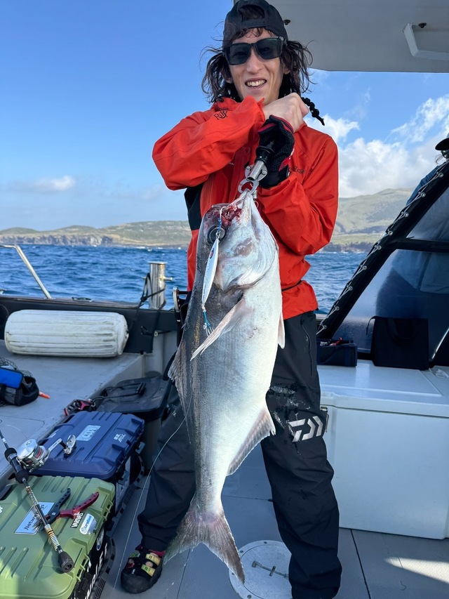 大型が回っているのを確認でき、無我夢中でシャクっていると自分にもヒット!ショゴサイズのヒレナガカンパチをキャッチ!