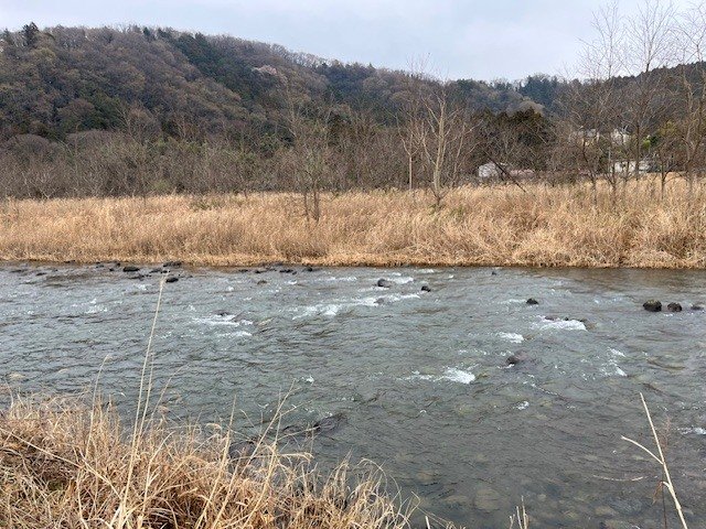 お昼のチャイムが鳴り、お二人が入れ食っていたポイントに入らせてもらうと岸よりの石上をルアーが通る度にチェイス(土手上から見られているご夫婦達からはその様子が丸見えで、ロッドを握る手にアタリを感じ合わせると同時に「喰った」の発声)があるもののなかなかフッキング出来ません。なんとか皆さんがいる前で1匹だけキャッチできましたが後が続かず終了としました。
