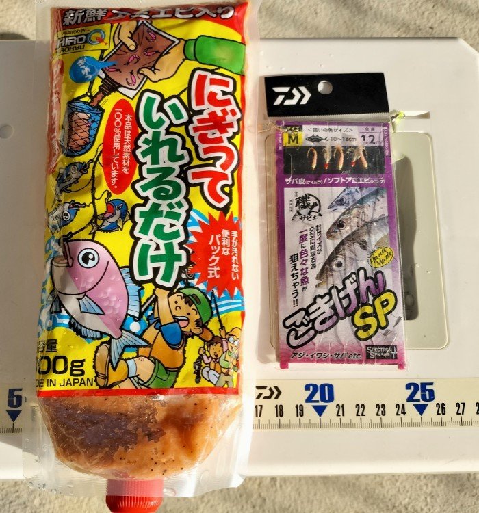 今回のエサはHIROKYUさんの「にぎっていれるだけ」を使用しました。手が汚れないパック式でとっても便利に使えてオススメですよ。また調査に行って来ます~(*'▽')