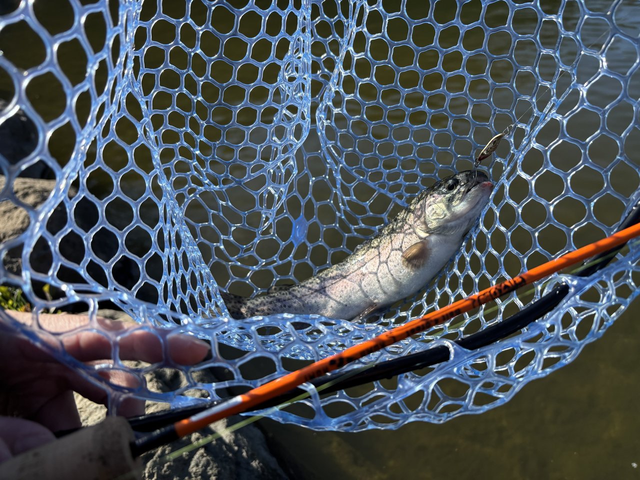 朝一から水が澄んでいたため、さかさにょろの茶色などを用いて早々2匹釣れました。