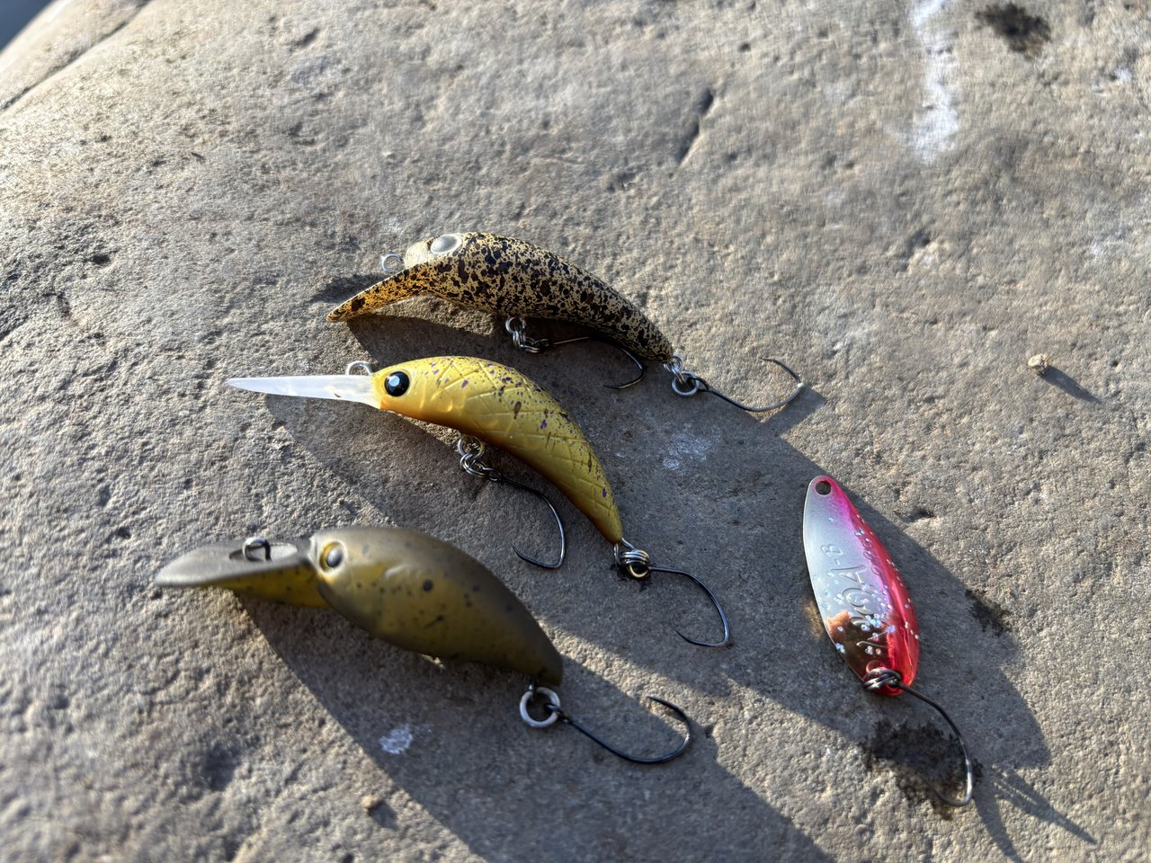 いろいろ投げて遊んでいたら日が陰ってきたら水面が騒がしくなってきたのでデカミッツドライ、カディスなどのトップウォーター系ルアーを投げたら大ハマりで楽しく釣ることが出来ました。