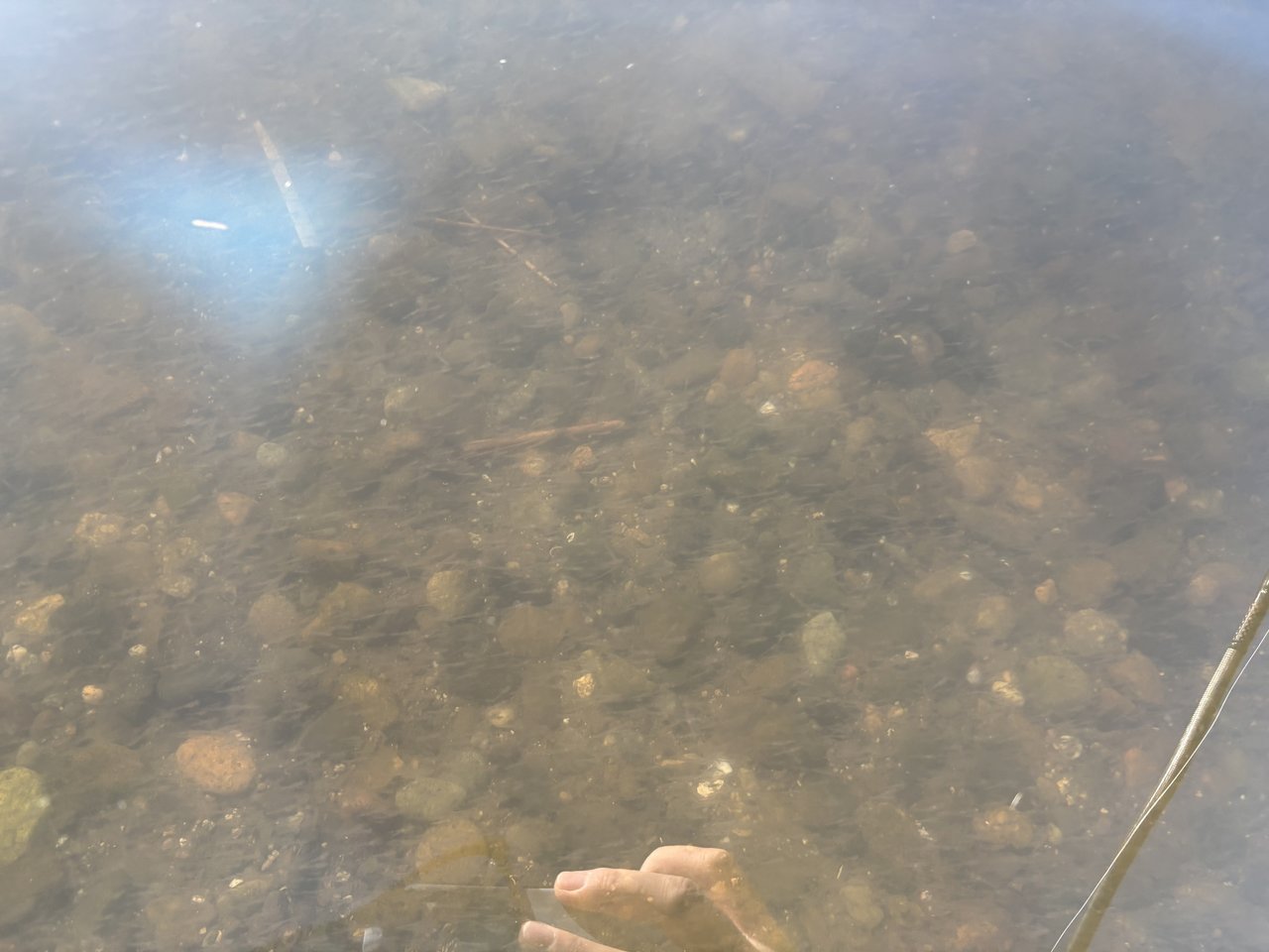 釣り場に着くと5名程の釣り人がいらっしゃいました。川を覗くと大小様々なニジマスが確認出来ました。