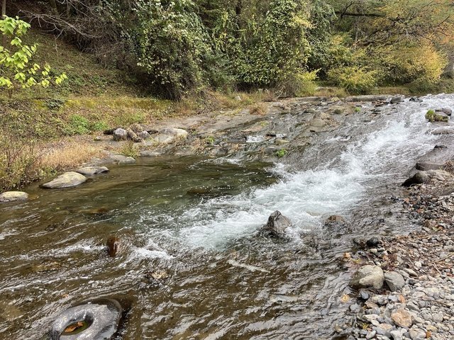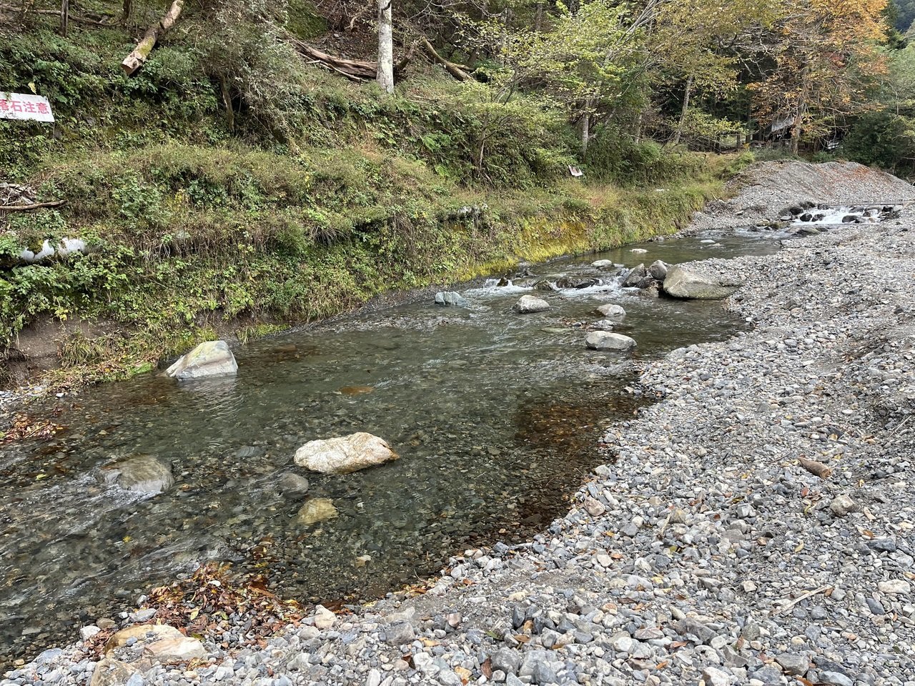 先行の方がいらっしゃったので、適当に空いていた区画の下流部に入りました。