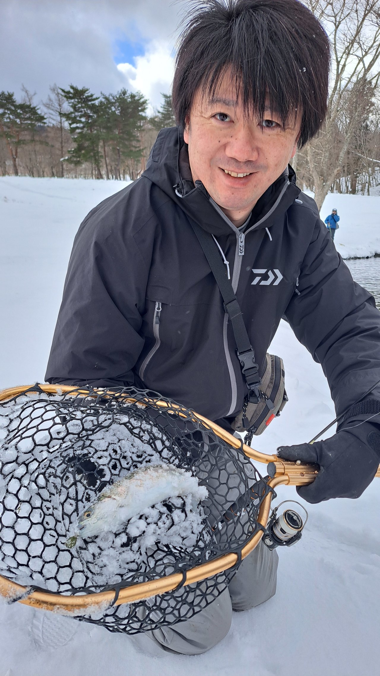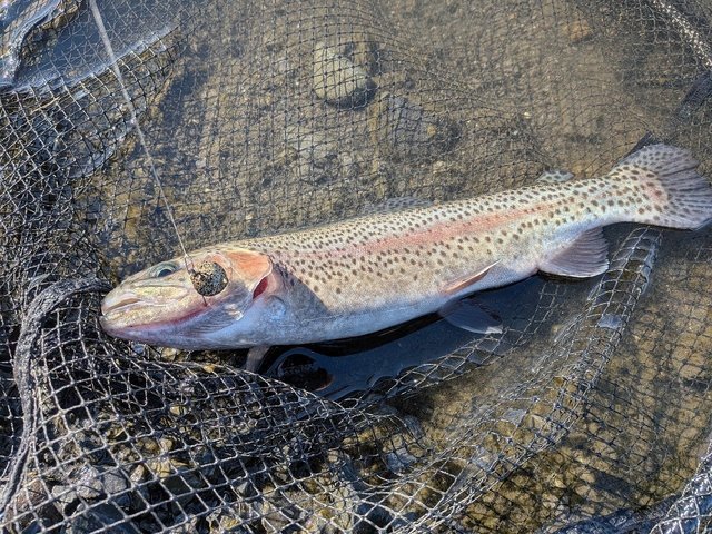 ガイドが凍るような寒さでしたが、レギュラーサイズのマスが多く魚は元気いっぱい!