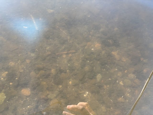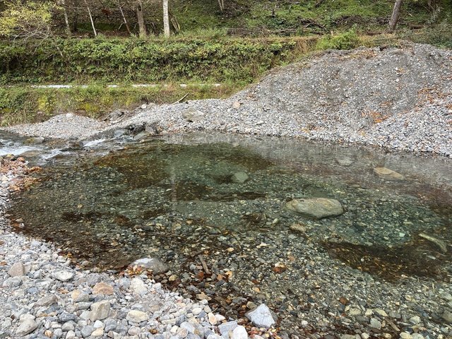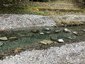 ぱっと見魚影は確認出来ませんでしたが、区画を仕切る岩の隙間を見ると大きなイワナが見えました。