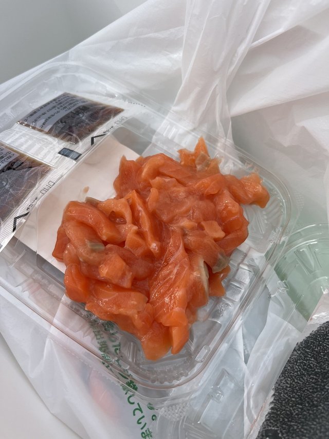 エサは人間の昼ご飯兼用のサーモンの切り身です。