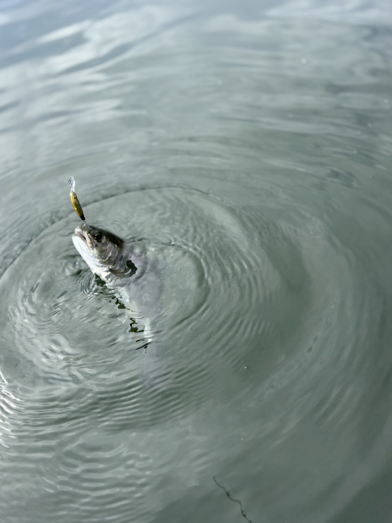 着水後のウェイト戻しで少しリーリングを入れた際に微かなアタリ…
