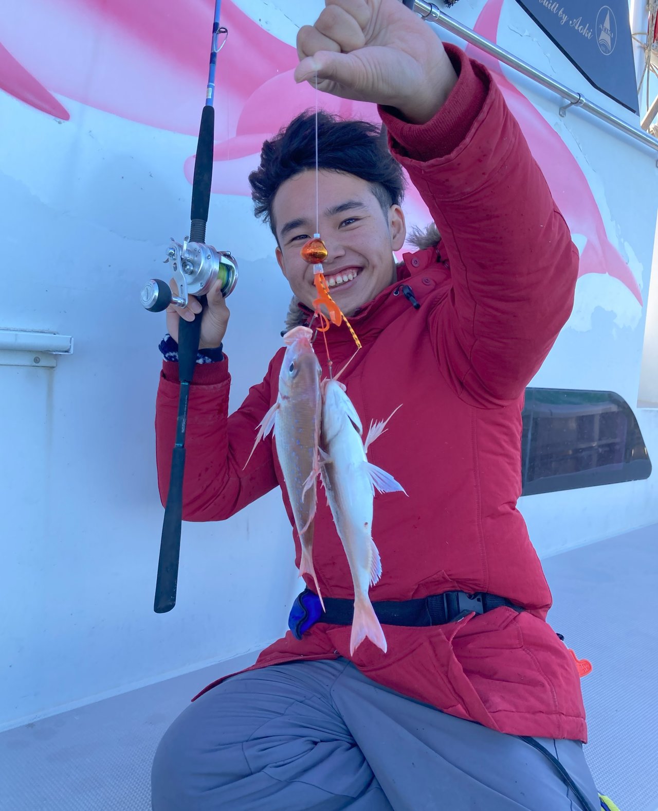 更にキャストして再びのアタリ!なんとホウボウのダブル!?これには船長もビックリしていました。