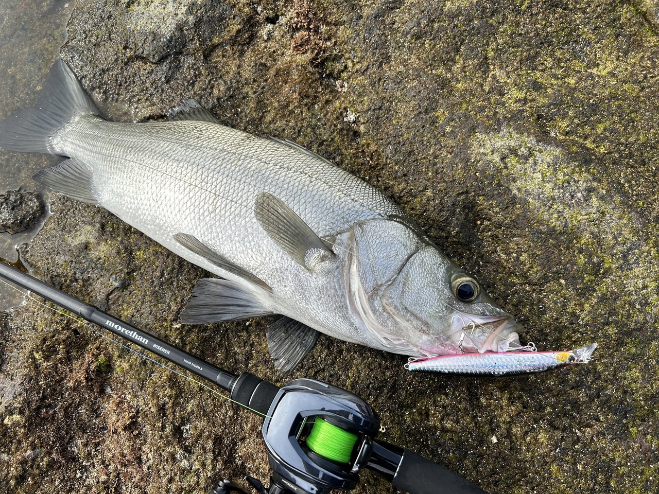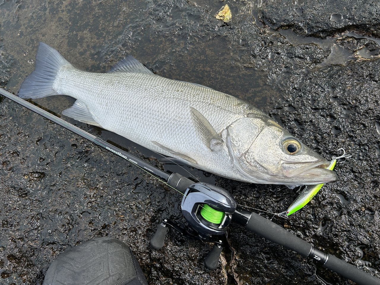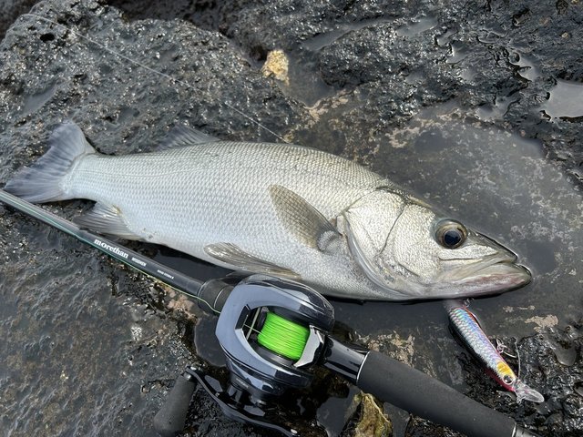 以前からやってみたかったベイトタックルのヒラスズキに挑戦しました。ベイトタックルに苦手意識のある私ですが、最新のタックルでしたので風速10m以上の向かい風でも対応出来ました。飛距離はまだまだで練習が必要ですが、ルアーの操作性、感度、ファイト面はスピニングよりヒラスズキに合うと感じました。何よりベイトタックルは楽しいです!