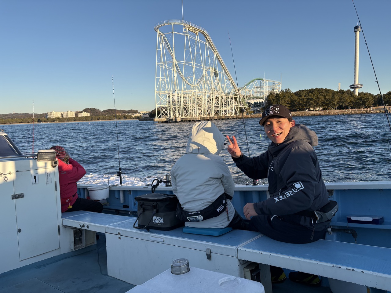 3人横並びで同じルアーだとさすがにスレるのも早いので、アタリが止まったら時間を空けて、忘れたころにまた投げる作戦で釣っていきました。