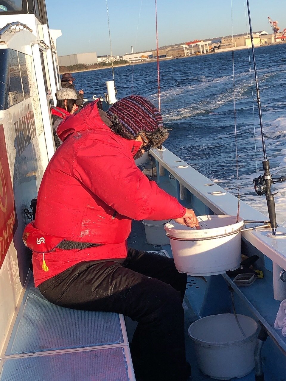 エサ組はトモ、バチコン組はミヨシ側を陣取っていざ出船!