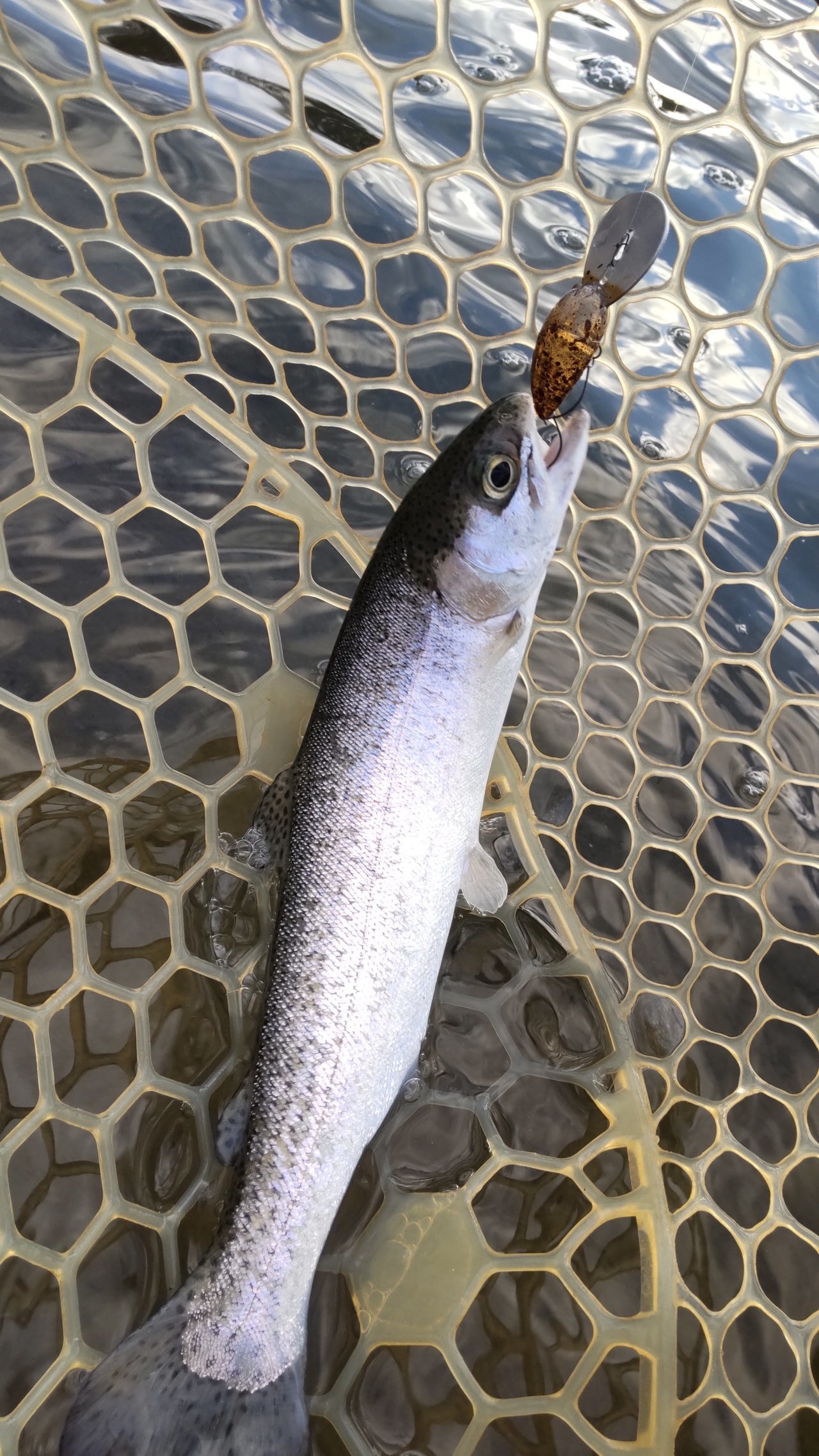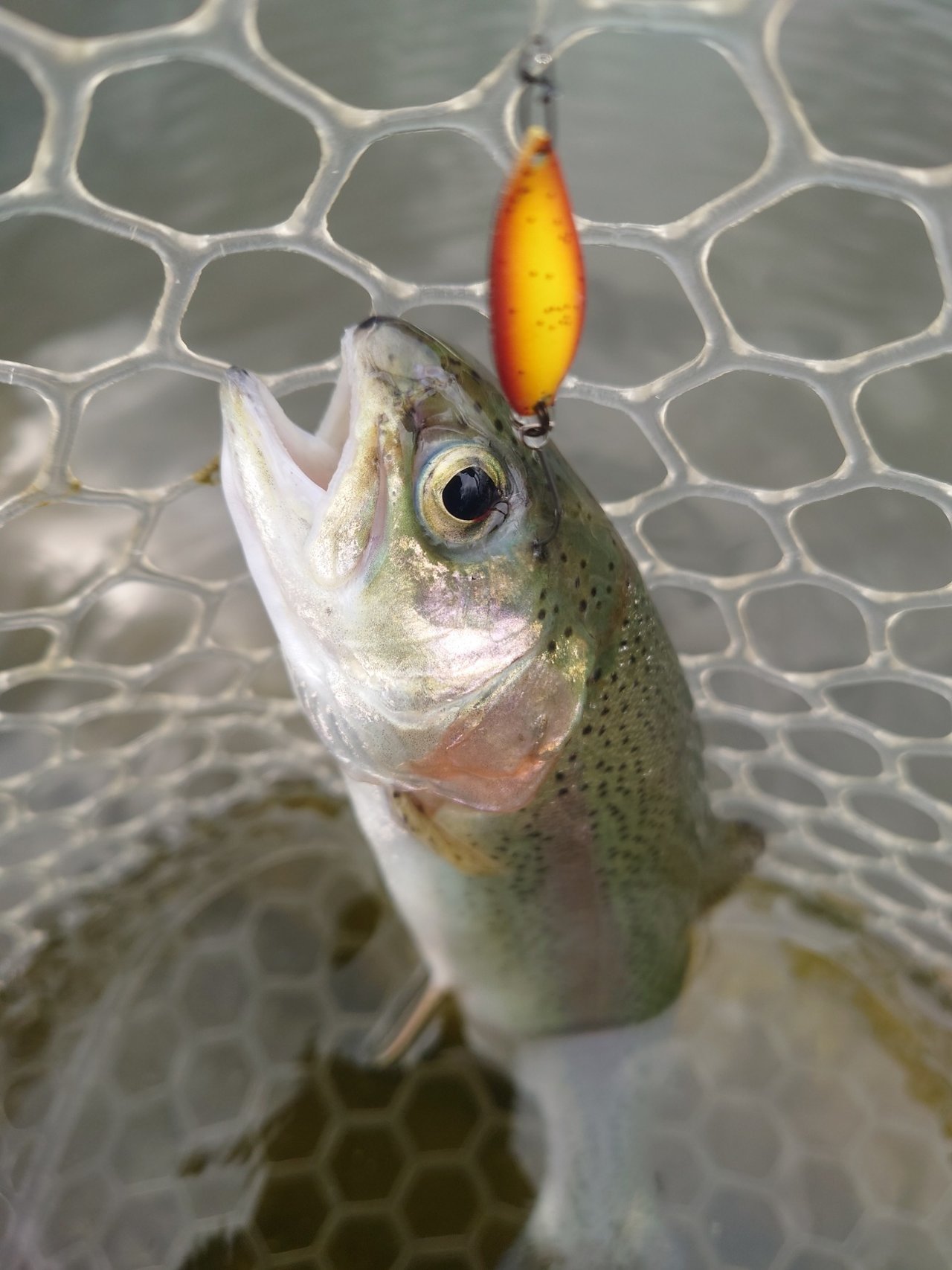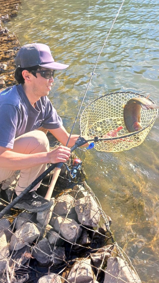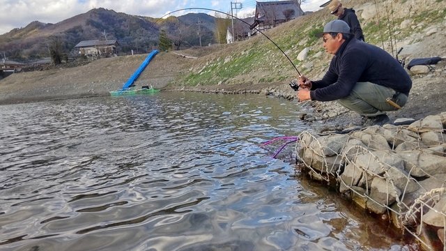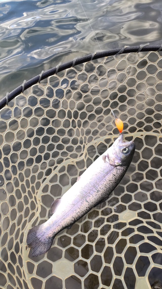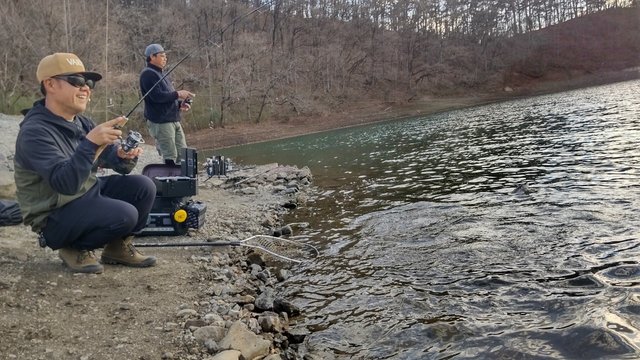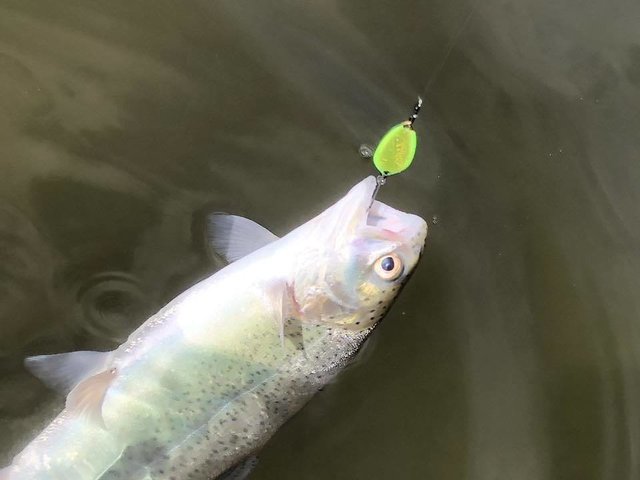 東山湖フィッシングエリアで使ったスプーンのバリエーションを増やしたので、復習がてらフック交換などしようかなーと思っていたら偶然放流と遭遇しました。