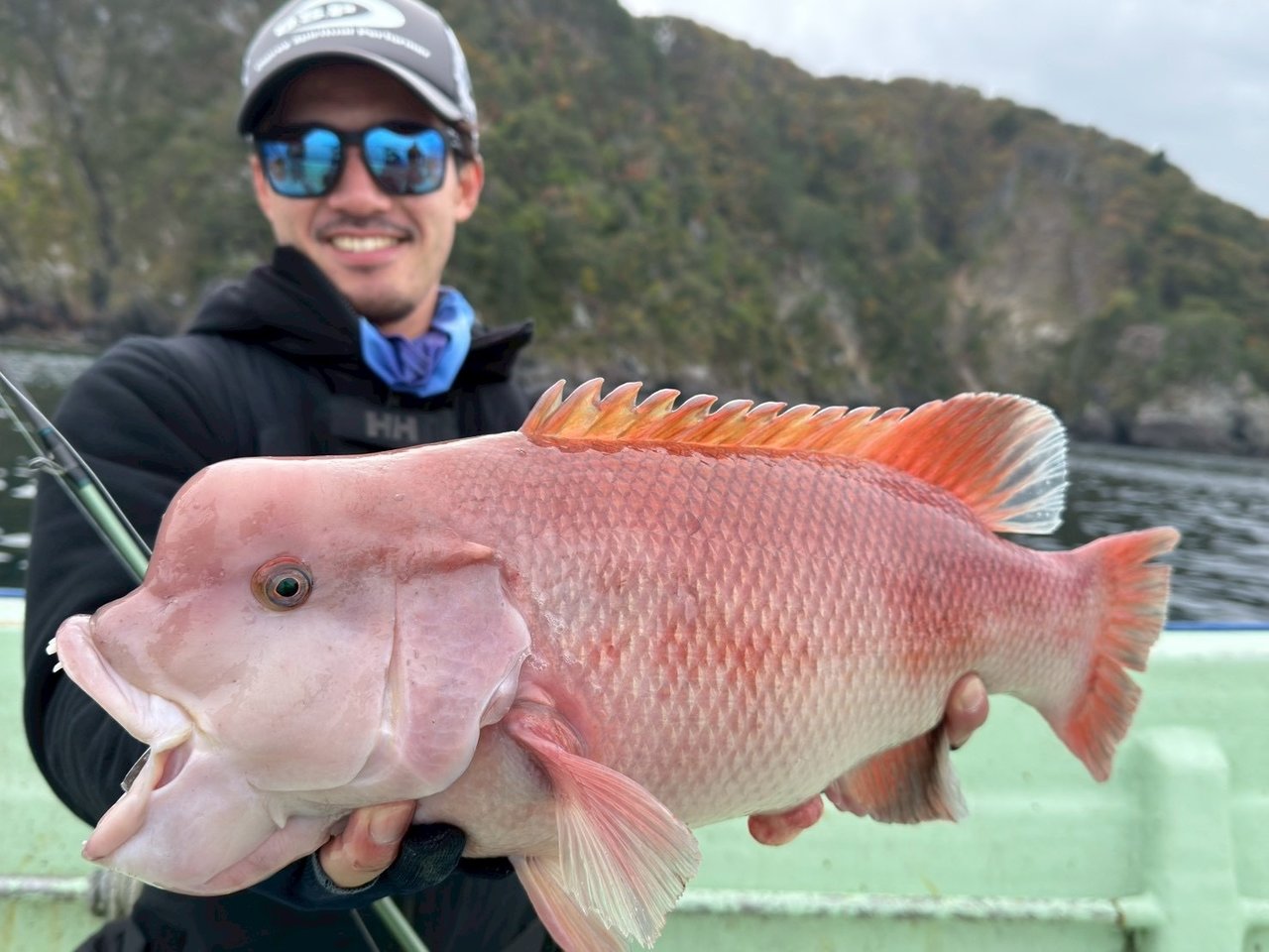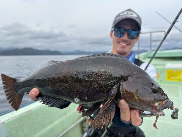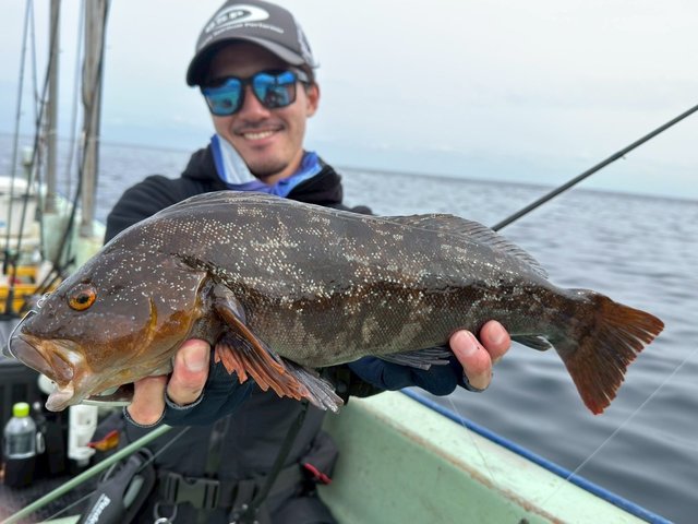 隆丸さんも今期初のボートロックと言う事で少し不安がある感じでしたがファーストポイントのシャローで40cmを始め、数本釣れて先ずは一安心!ですがやはり個体数は少ない感じでバイトが無いポイントが多く、難しい状況となりましたが20本近くキャッチし、何と!!54cmのコブダイもキャッチ!