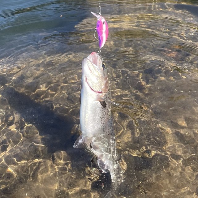 スプーンでは続かなかったのでプラグに変えてクランクベイトで様子を見た後にパニッシュでジャーキングを試したら好反応で数匹釣ることが出来て、その中から35㎝くらいの銀鮭をお持ち帰り用に確保♪