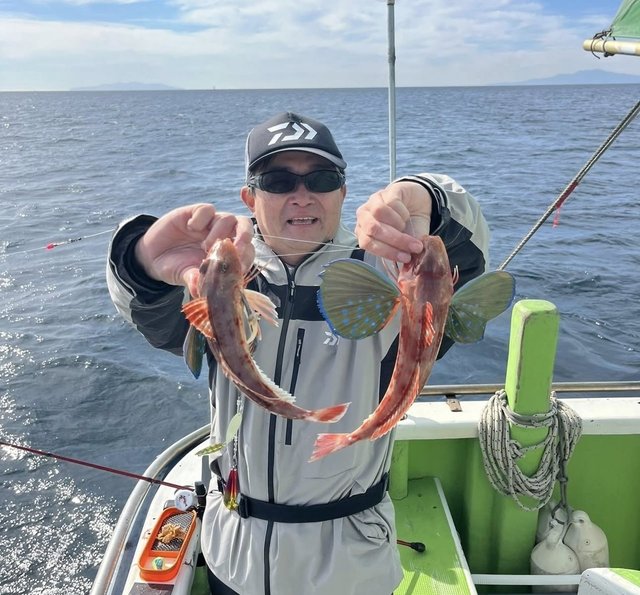 更にキャストして再びのアタリ!なんとホウボウのダブル!?これには船長もビックリしていました。