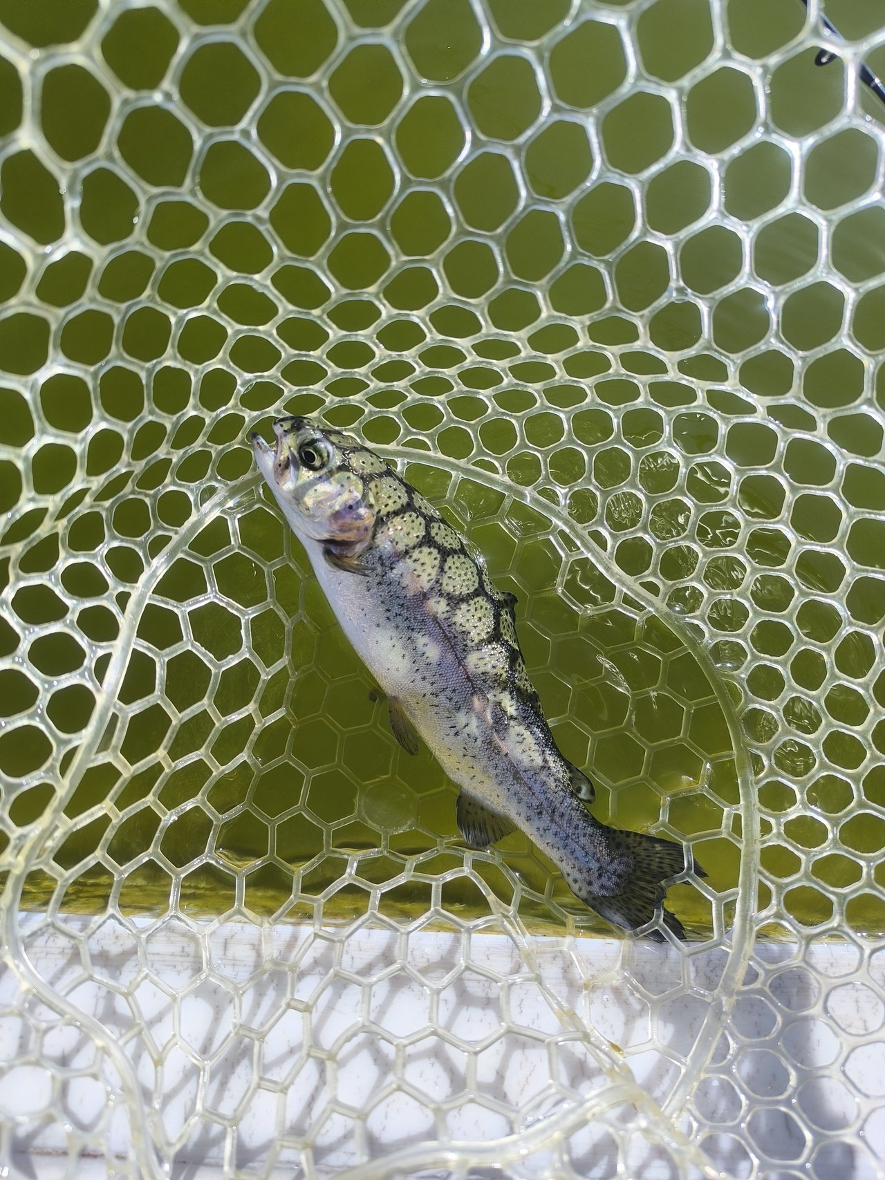 ポンドに日が当たるまでは活性が高いようでライズみられ。放流カラーでも釣れました!