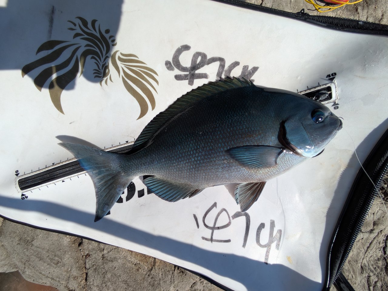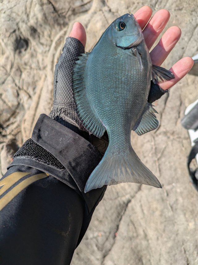 そんな中、釣り開始から3時間ほどのタイミングで、同行してもらっていたスタッフ森川が尾長メジナをゲット!
