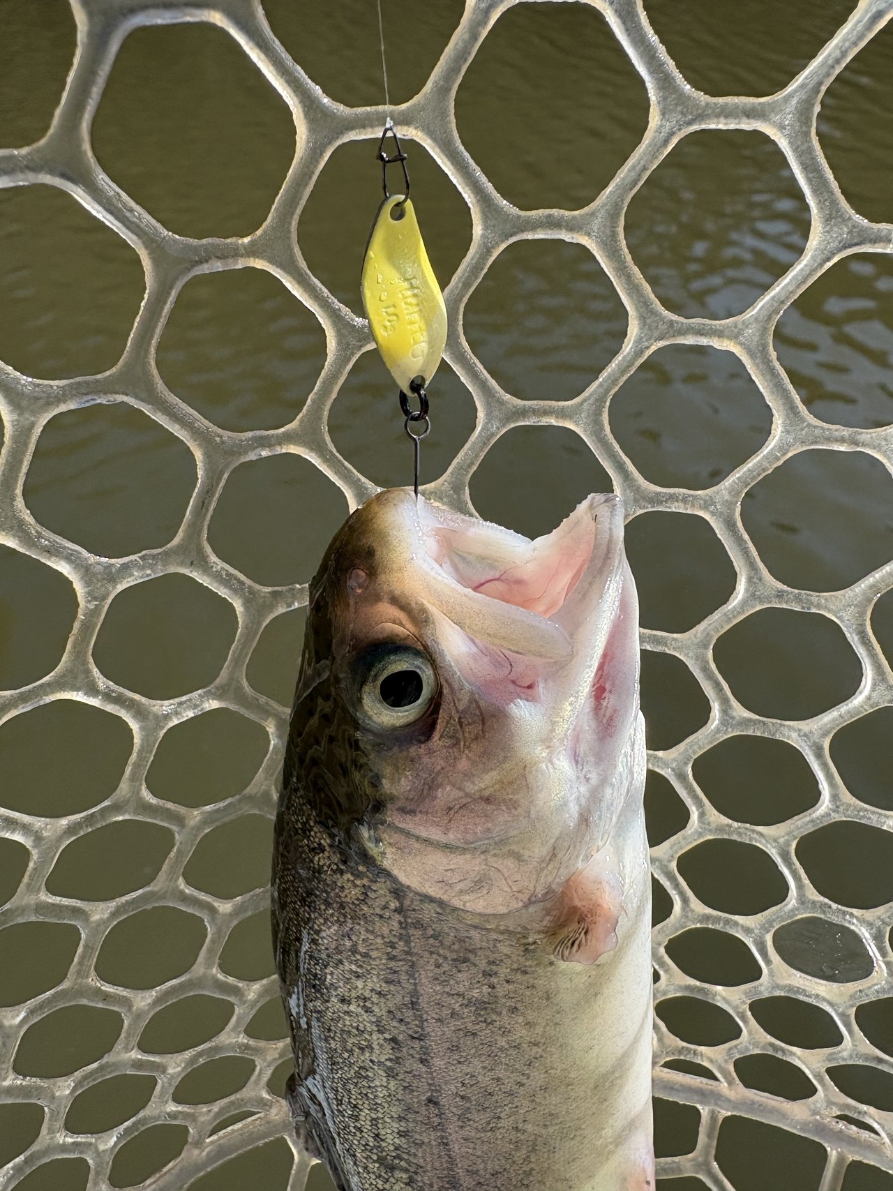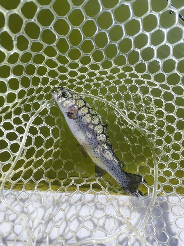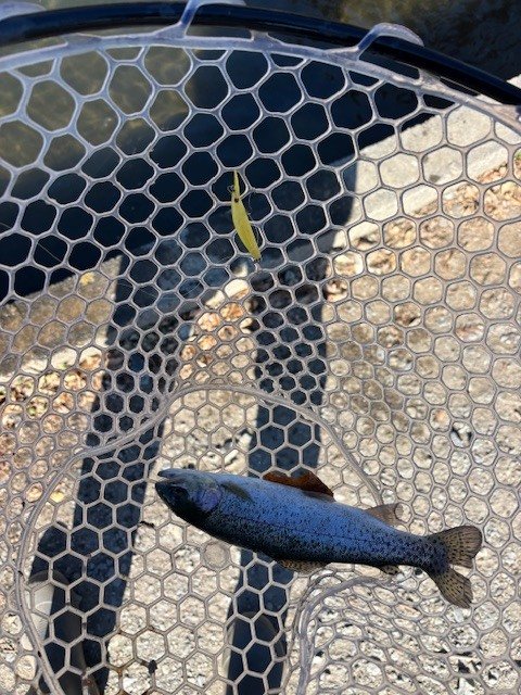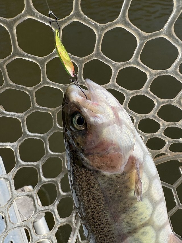バスは好反応!ある程度楽しんだところでトラウトの池に再び移動。今度は4号池で勝負!スプーンには反応しにくいですがミノーには反応あり!潜らせてからの浮上アクションで拾っていきました。ペレットが撒かれたタイミングでは伝家の宝刀「パペットサーフェス」で連発!