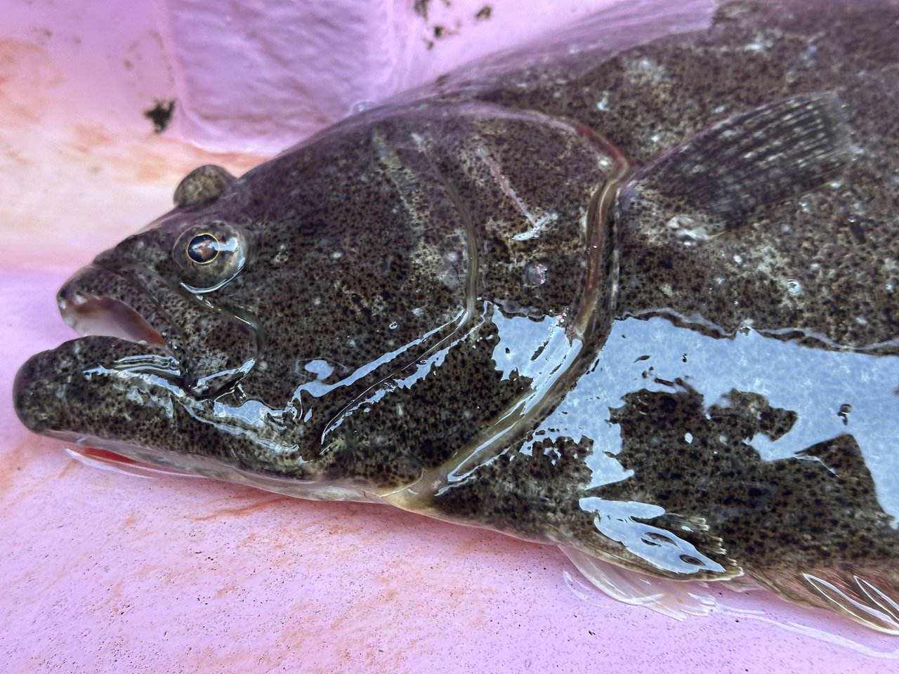 時間もギリギリかなという頃だったので落ち着いて十分に飲ませ、動き出したタイミングでほんの軽くあわせると底から出てきたのはヒラメでした!