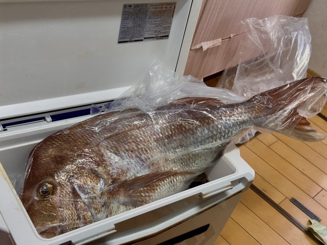 そんな大規模に手伝っていただいたマダイは私のクーラーボックスに入りきらず下船するときにはもう尻尾が干物状態でした(笑)