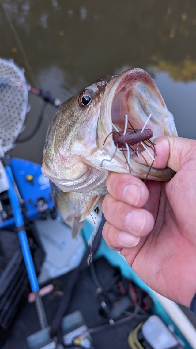先週の亀山湖の大会でスティーズRC2セットを亀山湖に奉納してしまった心の傷を癒しに豊英ダムに行ってきました。久しぶりだったので魚探で水の中を見ていくとバンクより少し離れた5-7mほどにいる感じで単純なバンクの上記水深にオダ絡めても魚がいません。なのでフラット、水中島、岬、張り出し、水温上がってから上流3mオダなどで釣れました。使ったリグはイモケムシ2,7gDS,ベローズギル2.8フリーリグ3,5gこれを一か所多くて2投のランガンでタイミングを無理くり合わせて釣っていきましたよ。多いポイントは4回入ったりしています。水温は15度ほどでしたが魚はまだまだ元気です。秋は水温降下が緩い沖目のポイントがオススメです。ブラックバスもまだまだ楽しめそうですね。