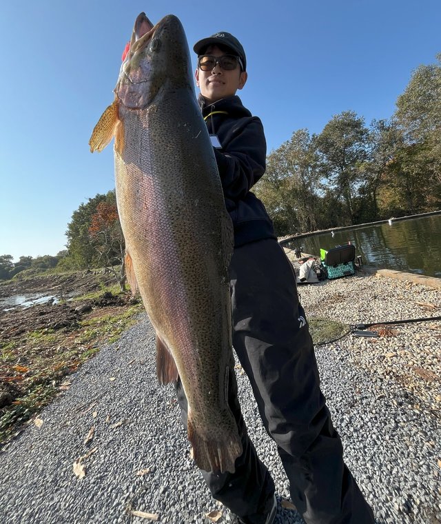 前日に特大サイズが放流されたのでそれも釣れたらいいなと4号池でスタート!