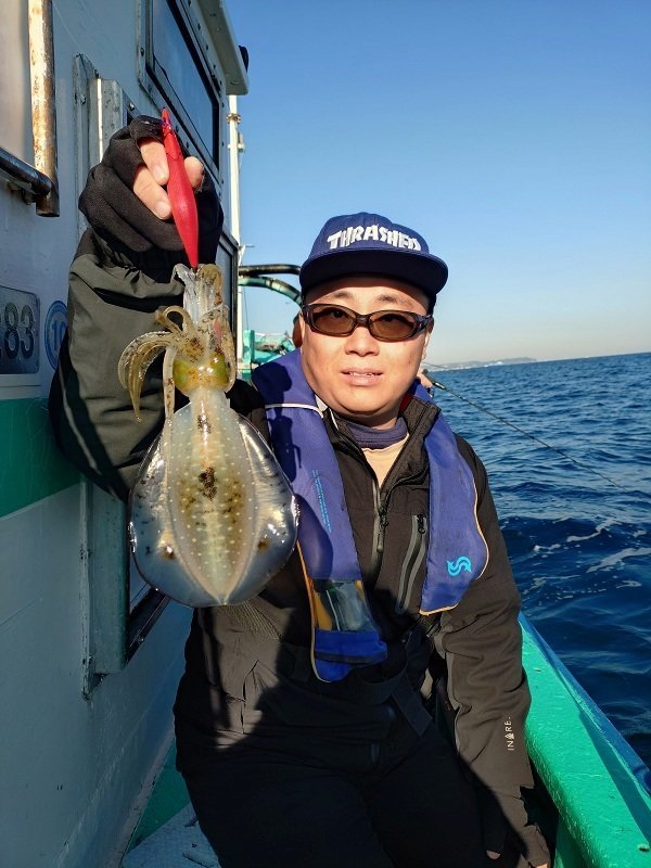 毎年恒例のティップランエギングに会に千葉稲毛海岸店の宮崎さんと行って来ました。船は富津金谷の紋三郎丸(輝栄丸の2号船)です。
