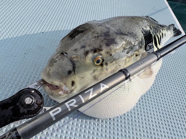 竿はジャッカルの新製品ロッド「プライザ188トラフグ」を使用しました!竿先はしなやかで小さな当たり前もとれ、スパイラルガイドセッティングで糸がらみなどのたトラブルなし!ベリーからバットはしっかりしておりフッキングもしっかり決まりとても使いやすい竿でした!
