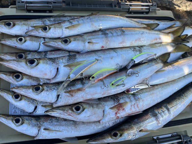 基本的にはただ巻きで良いのですが、フォールでアタリを出すという謎にテクニカルな時間も合ったり、タイミングが掴めず苦戦した時間もありましたが、ブリブリの大型カマスがたくさん釣れ、無事リベンジ成功となりました!!