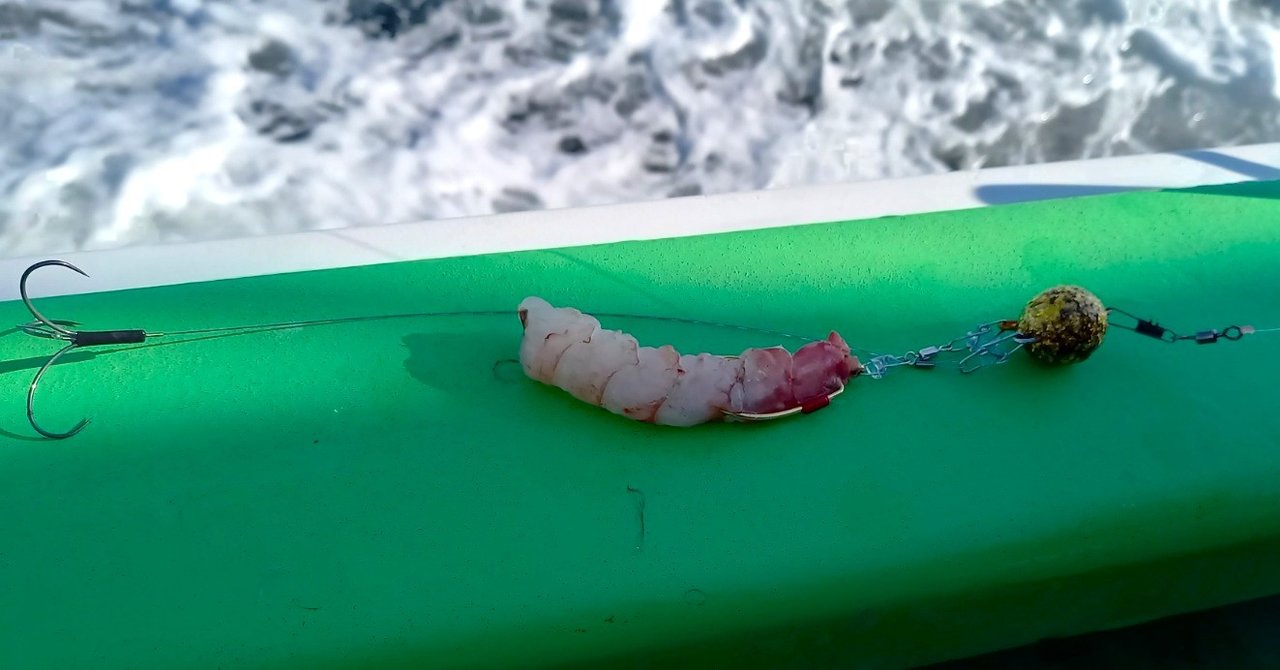 ここのところイワシなどのベイトがわんさかいて、それにロックオンしているらしく、ハリのついたエビなど見向きもしない様子。エサは一度も齧られることなく…