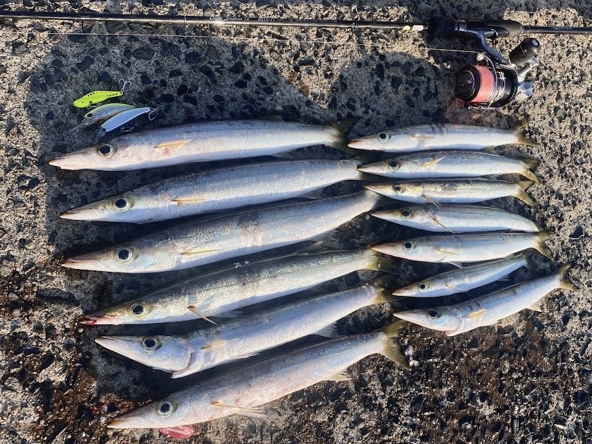 先日スタッフ石橋が呼子方面でカマスの好釣果を出していたので、今回はスタッフ石橋に同行させていただきカマス釣りに行ってきました。カマス釣り自体、今までアジングの外道などで釣ったことは何度かありましたが、専門的に狙うのは初めて。スタッフ石橋おすすめのルアーでいざ釣り開始!