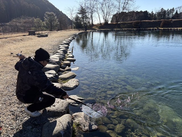 先日、大芦川F&Cさんに行ってきました!朝の気温は-5℃、寒すぎて少し温まってから釣り開始ですwこの日は合うものが見つけられず追うけど食わない状況に苦戦しました。プラグだと見切ってしまいスプーンの方が良く、スライドアクションとロッドワークによる操作が一番反応良かったです!この日は少々難しかったですが相変わらず魚影の濃いエリアさんなのでおすすめです♪また行きます!