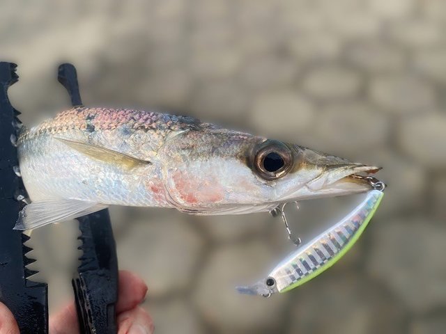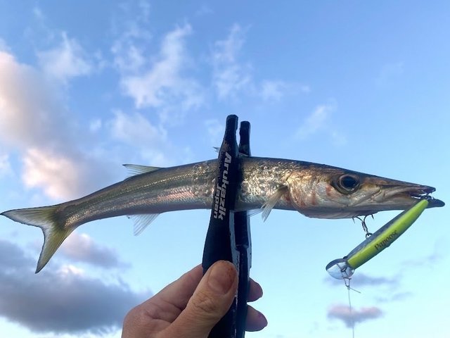 時合に突入するとアタリ連発!しかしノラないバレるが連発。一筋縄では行かない中、続々キャッチ!それもデカい!時合が落ち着いてかもルアーやレンジを変えるとポツポツキャッチ。ゲーム性の高さに驚き!今までヒラマサのベイトってイメージが強かったですが、完全にイメージが変わり、ドハマり決定♪そして今時期のカマスは脂ノリノリで絶品です!