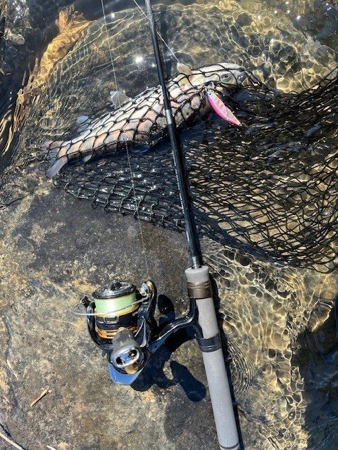 トラウトのミノー用タックルなので、ラインが細くせっかくかかっても切れるのが怖くて甘い合わせばかりでバラしまくり…