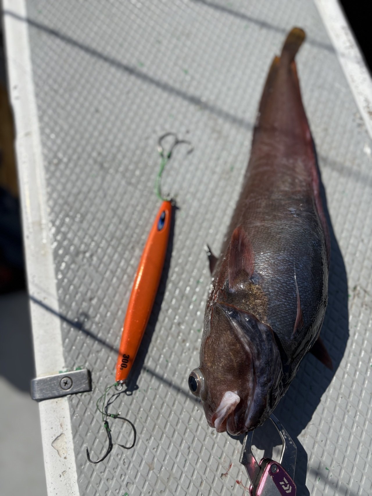 あさイチ、クロムツの群れに当たり早々にお土産GET♪しかしその後、サメ連発で大苦戦。(^^;)ようやくサメの猛攻が過ぎたころに、同行のお客様が良型アカムツをキャッチ♪デカくて美味しそうなアカムツでした。その後今度は、同船されていた方がデカいメヌケをキャッチ。その後、続々と船中でメヌケが上がり大盛り上がり。私はというと、なぜかデカいドンコでした(笑)
