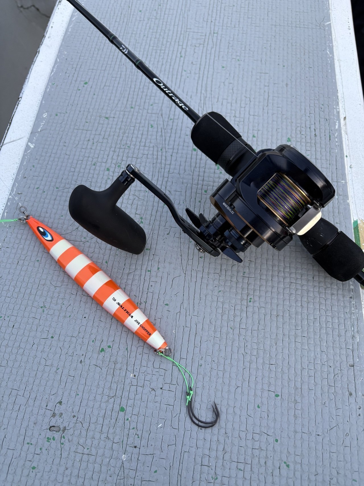 今回は、『ダイワ・アウトレイジSJ』を主に使用してみました。アウトレイジSJは初使用でしたが、ブランクスはしっかり曲がり、ひずみパワーできちんとジグが持ち上がり動かせたので納得の操作感でした!近海・中深海ともに、これからスロージギングを始めたいという方にオススメです☆