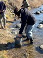 先週ルアーでは釣れたものの、餌釣りでは○ーズだったのでリベンジマッチになります。釣り場はいつもの角田大橋上流放流ポイントで通称「とくら屋」前と言われるところです。到着して川を見ると川鵜が1羽潜っていたので即退いてもらいましたが頭の痛い問題です。釣りを始め1時間以上集中してポイントをずらしながら餌を流しますがヤマメからの音信は全くありません。すると弱気虫が出て即ルアーロッドに持ち替えてしまいキャストを続けると、とくら屋さんが日課の川見に来ており挨拶をするとまもなく放流が始まるとのことで暫し中断。中津川では今年解禁の3月は毎週放流を行っています。放流が終わり岸際の石の隙間で休んでいるヤマメを見つけては流心に向けて追い出すことを繰り返し、間を開けてから甘〜い期待を持って餌釣りに変更です。しか〜し釣れません。またもやルアーロッドに持ち替えて、先日YouTubeでみていたやや流れの速いところでクルセイダーゲキアツ4.5gを巻くとようやく初ヒットしました。少し上流に戻りミノーを投げると頻繁に追いがありましたがショートバイトの連続でなかなかフッキング出来ません。巻くコースを変えたりミノーチェンジしたりすること数投、何とかフッキングすることができました。その後はミノーで1匹追加できたものの、とうとう餌釣りでは連続○ーズです。いつになったら釣れるのでしょうか?