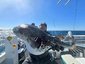 うねりが残っているため非常に釣りがしづらいですが、水深70m付近のポイントでスタート。まずはカットウ針を付けた仕掛けで開始します。開始直後から竿先にバンバンアタリが出る!そして掛かる!「これはXデーか!?」と思ったのも束の間、上がって来たのはサバフグ。。。